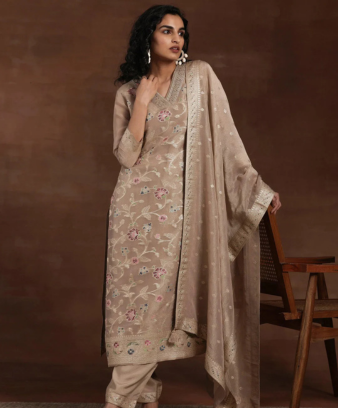 A leading voice for sustainable fashion, Anita Dongre’s designs blend traditional Rajasthani crafts with modern wearability, celebrating intricate gota patti work and empowering artisans.
